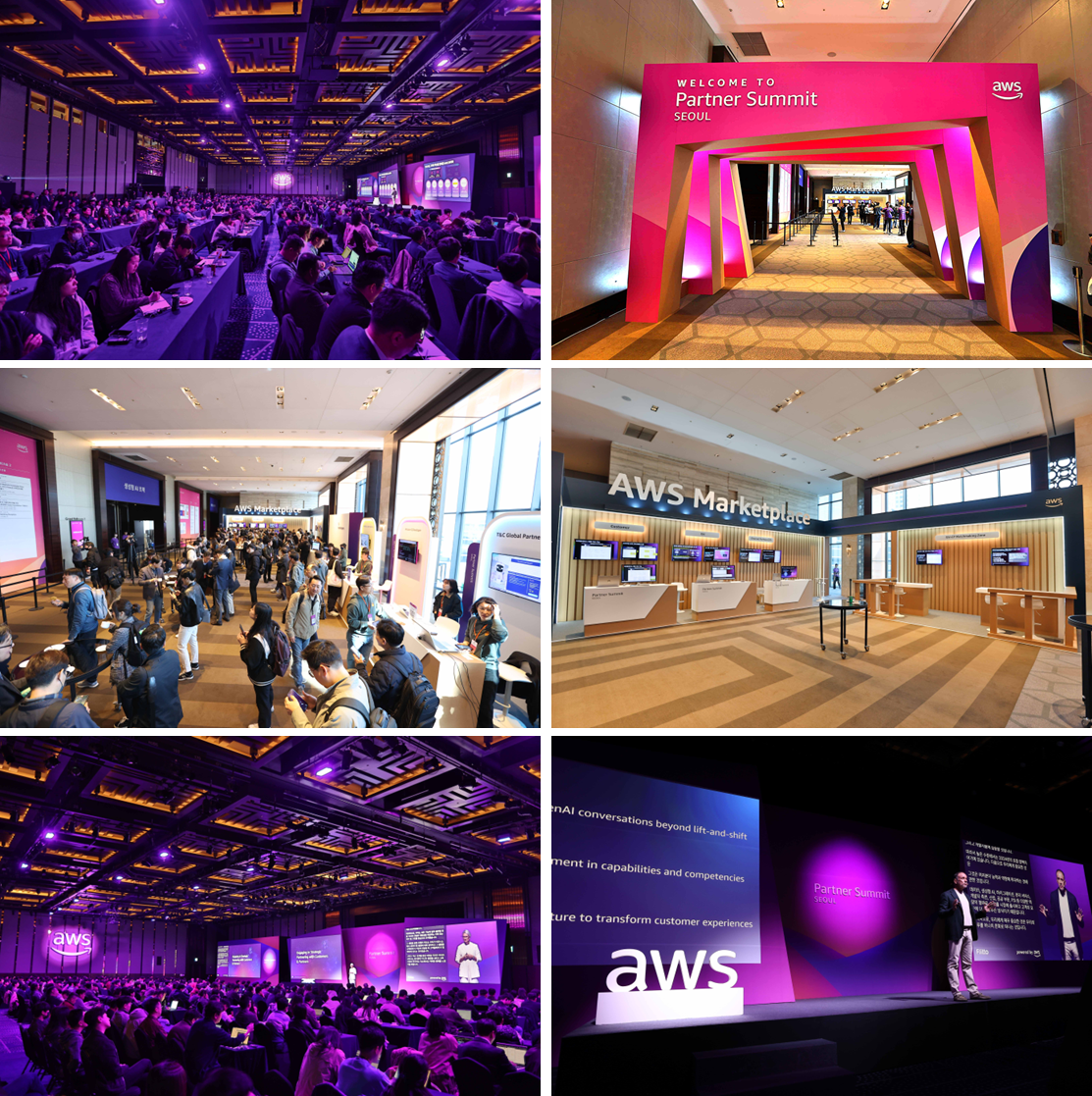 AWS Partner Summit의 Visual Art를 활용하여 등록대, 게이트, 부스, 세션장 등 일관된 브랜딩 적용
